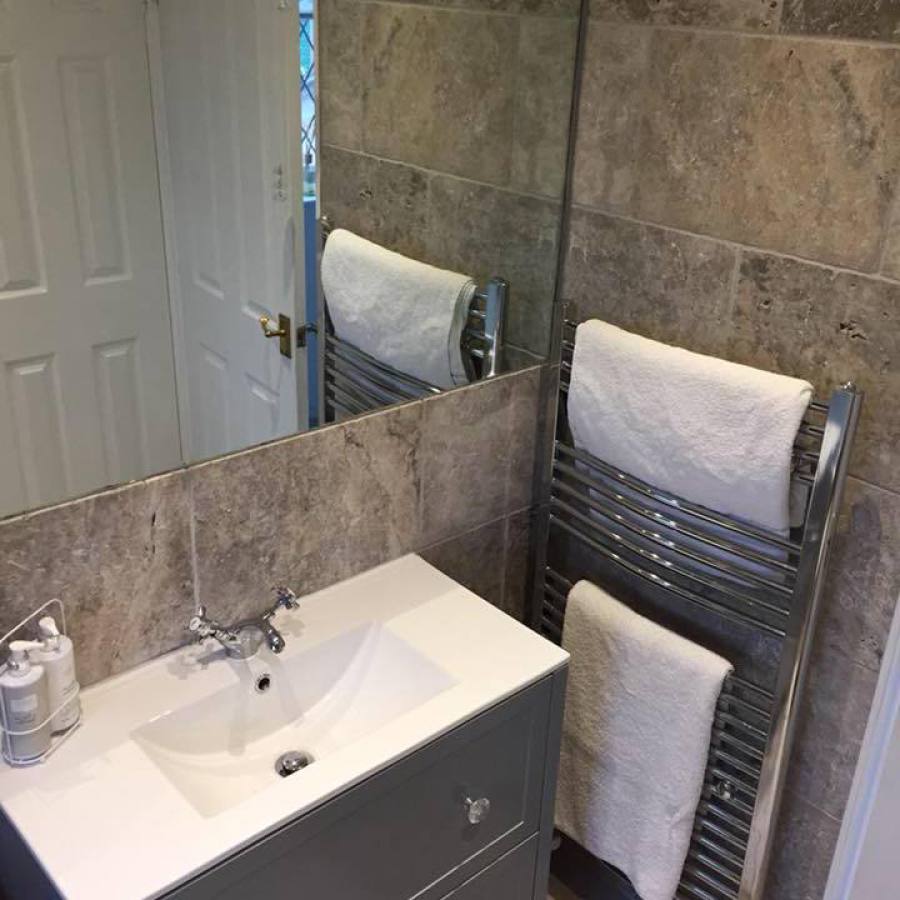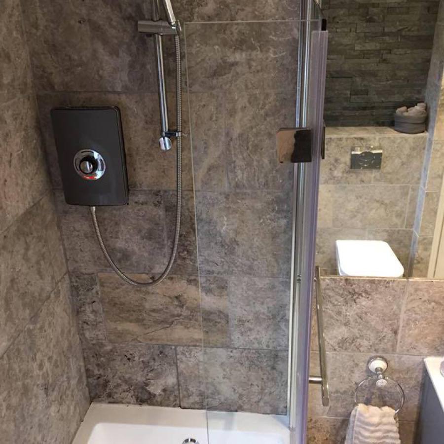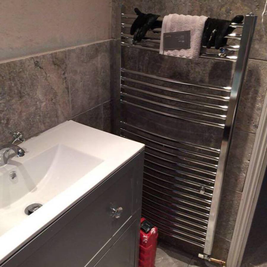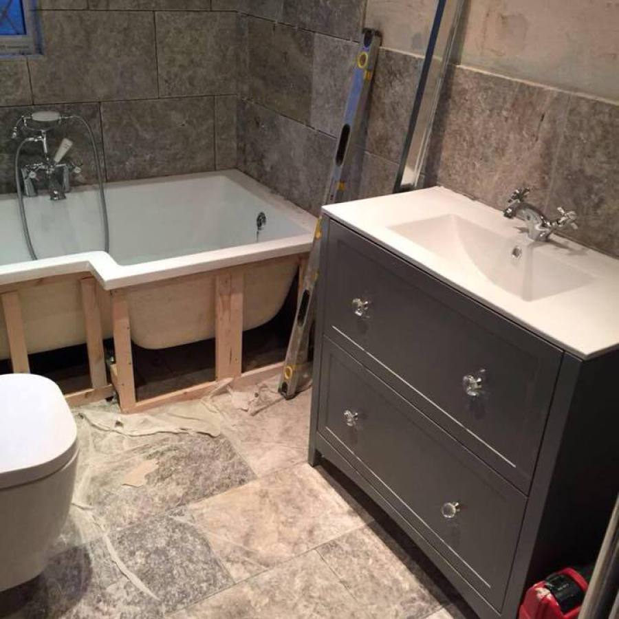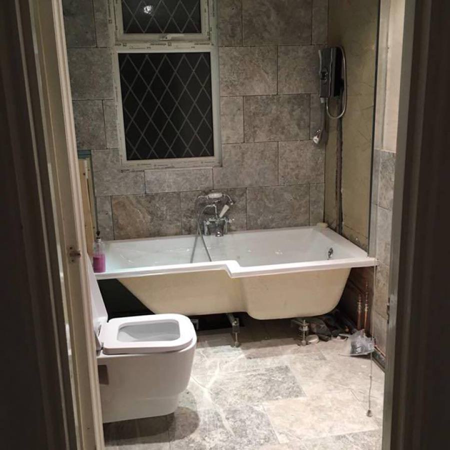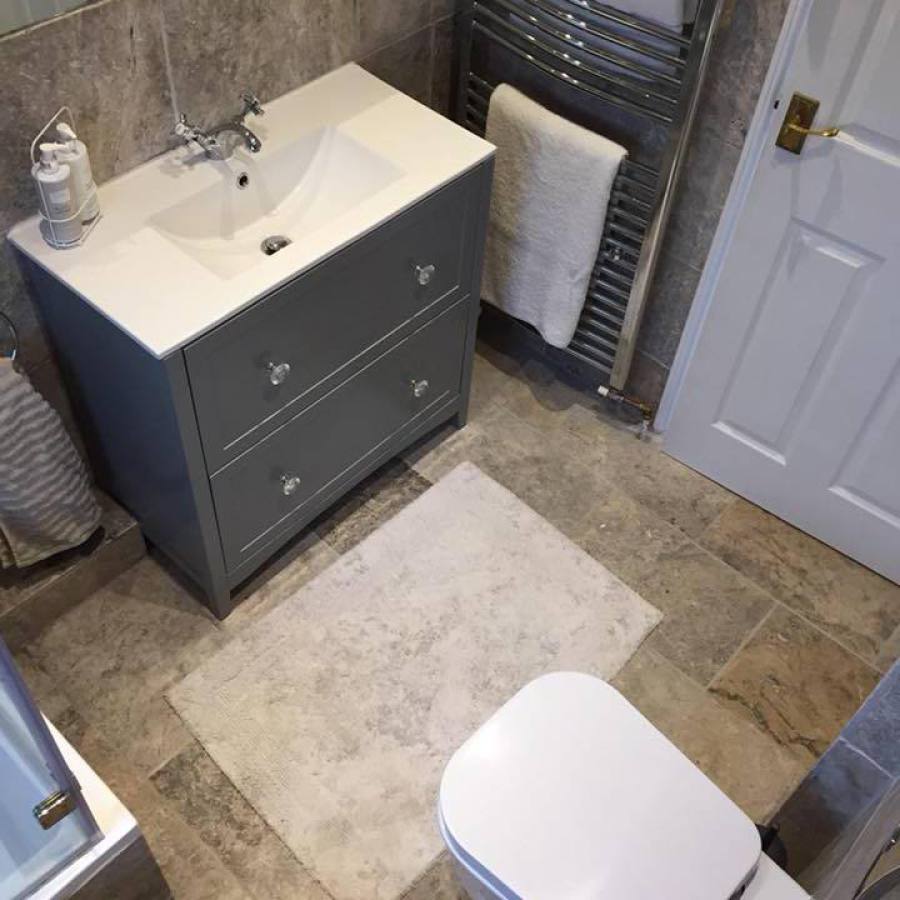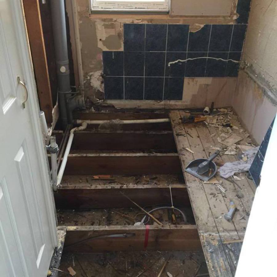 A bathroom fully transformed! Old suite stripped out, section of rotten floor replaced and made safe, new suite reconfigured and installed, floor and walls fully tiled with integrated mirror over sink. Whole job fully project managed.